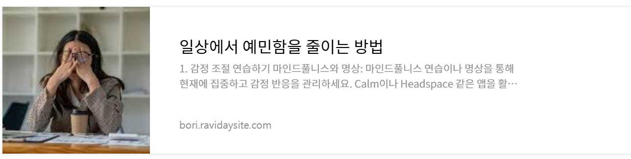 다른글 더보기 - 일상에서 예민함을 줄이는 방법