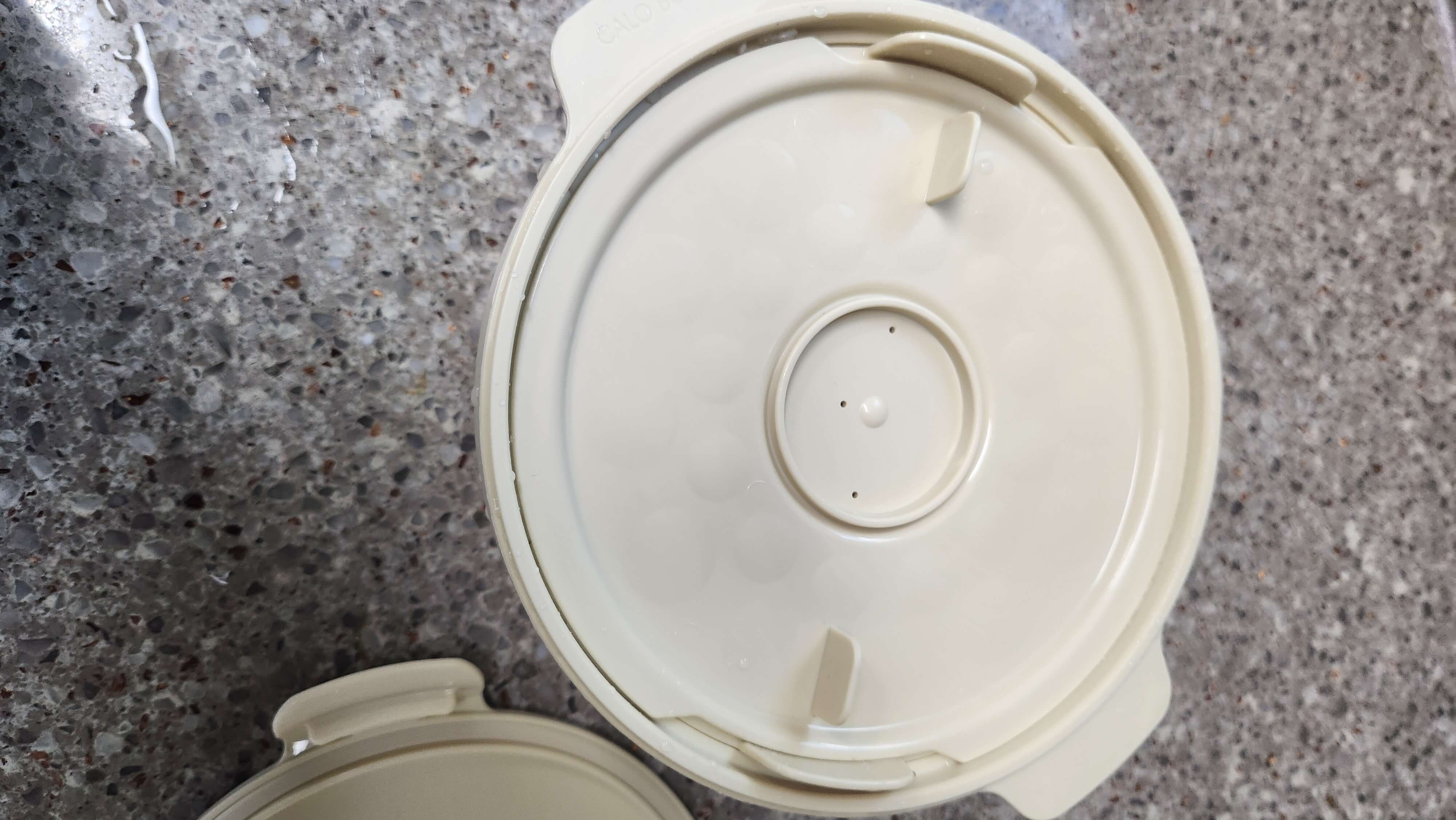 전자레인지에서 꺼내면 위쪽 구멍으로 물이 좀 나와있어요. 많이 뜨거우니 조심!