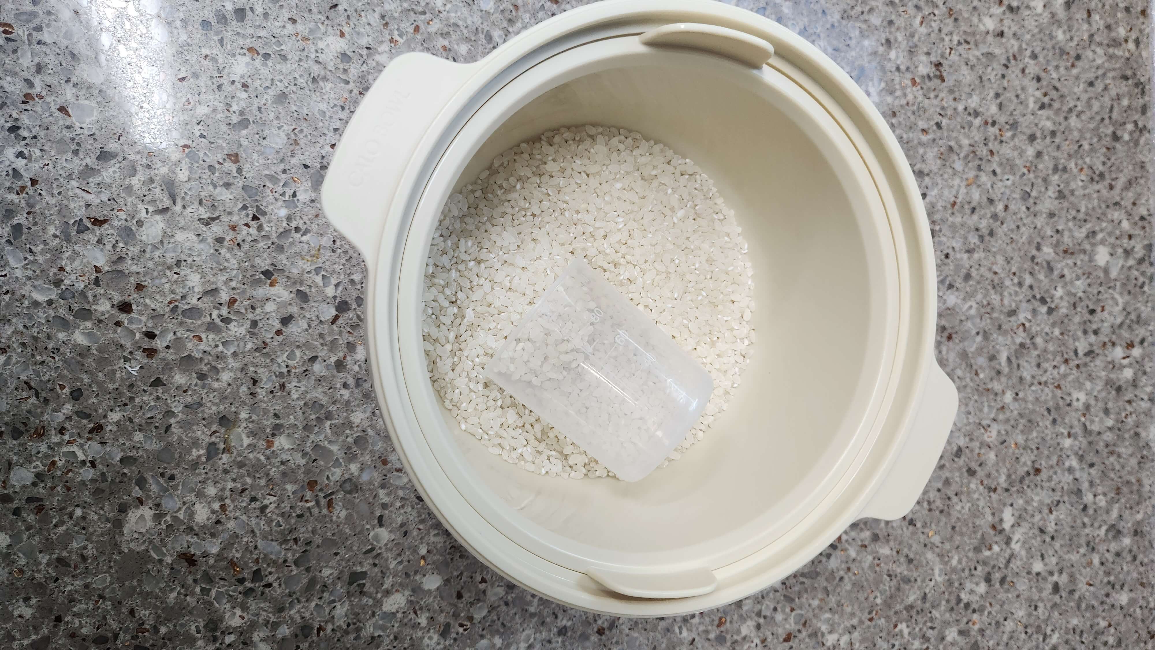 구매하면 이렇게 전용 계량컵이 들어있고요. 컵으로 쌀을 넣고 잘 씻어서 잠시 불립니다. 저는 크게 밥의 느낌이 중요! 이런 스타일은 아니어서 다른 일 하면서 잠시 불려요.